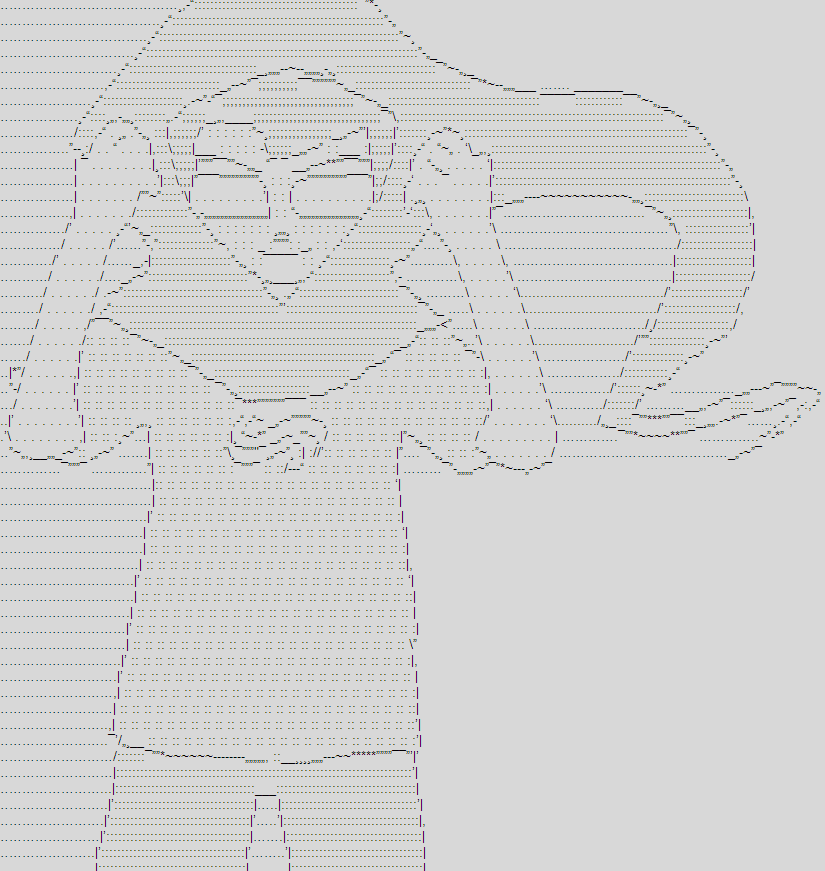 rapid99 Mayor of Cantown “THE MAYOR’S FRIENDSHIP IS A UNIVERSAL CONSTANT, AND I AM INSULTED BEYOND COMPREHENSION AS WELL AS MY CAPACITY TO VOMIT THAT YOU WOULD INSINUATE OTHERWISE.” Maybe one day I’ll ASCII the second part of the source image, then make an ASCII gif.